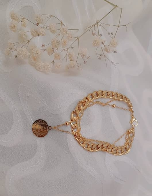 این دستبند با ترکیب زنجیرهای متفاوت و آویز سکه الیزابت، انتخابی خاص برای بانوانیست که به دنبال زیورآلاتی با حس تاریخی و استایل مجلسی هستند.