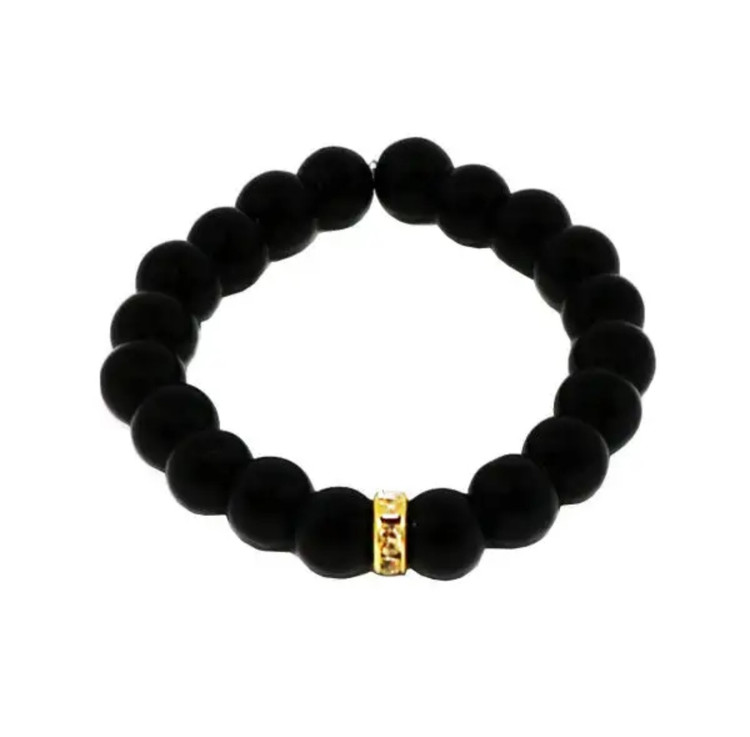 این دستبند با مهرههای مشکی مات و یک مهره طلایی مرکزی، انتخابی مناسب برای آقایانیست که به دنبال استایلی مینیمال و در عین حال متفاوت هستند.