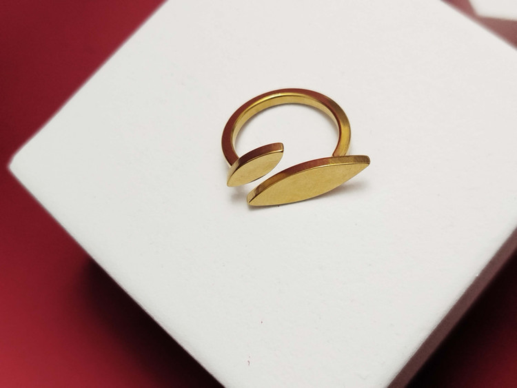 با این انگشتر زنانه خاص، استایل خود را با جلوهای مینیمال و شیک کامل کنید. طراحی دوبل بیضیشکل روی حلقه، ظاهری متفاوت و مدرن ایجاد کرده که مناسب استفاده روزمره یا ستهای فشن است. ساختهشده از استیل ضد حساسیت با آبکاری طلایی براق، این انگشتر هم زیباست و هم راحت.