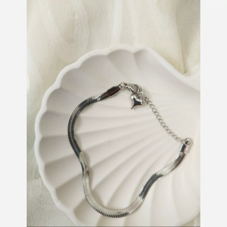 با این دستبند ماری شیک، ترکیبی از لطافت و استایل مدرن را تجربه کنید. بافت صاف و براق آن بهخوبی روی دست مینشیند و آویز قلبی ظریف، جلوهای عاشقانه و خاص به آن میبخشد. ساختهشده از استیل ضد حساسیت با آبکاری حرفهای، مناسب برای استفاده روزمره یا هدیه دادن به عزیزان.