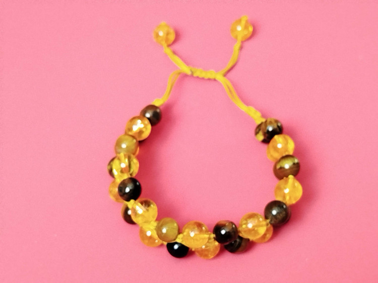 این دستبند با استفاده از سنگهای سیترین و چشم ببر ساخته شده—برای کسانی که به دنبال تعادل درونی، تمرکز ذهنی و جذب فراوانی در زندگی هستند.