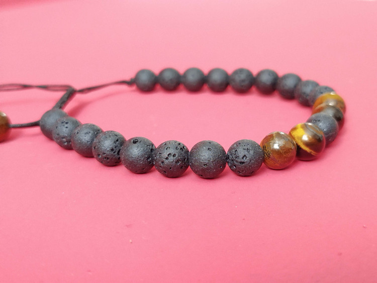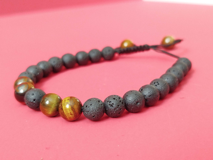 دستبند چشم ببر قهوهای با سنگ لاوا